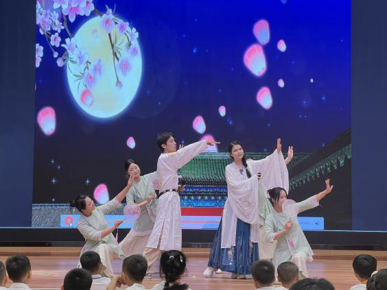 活动期间,李莉首先参加了幼儿园“小红馆”开馆仪式,实地察看场馆建设与红色教育资源布局,对幼儿园以“小红馆”为载体厚植幼儿家国情怀的做法给予了肯定。在随后的庆典文艺演出中,由教育学院教师郭雅婷指导、学院驻园实习学生精心编排的歌伴舞节目精彩亮相,学生们以灵动的舞姿、饱满的状态展现了扎实的专业素养,赢得现场阵阵掌声,成为庆典中展现“校企深度融合”成果的生动缩影。