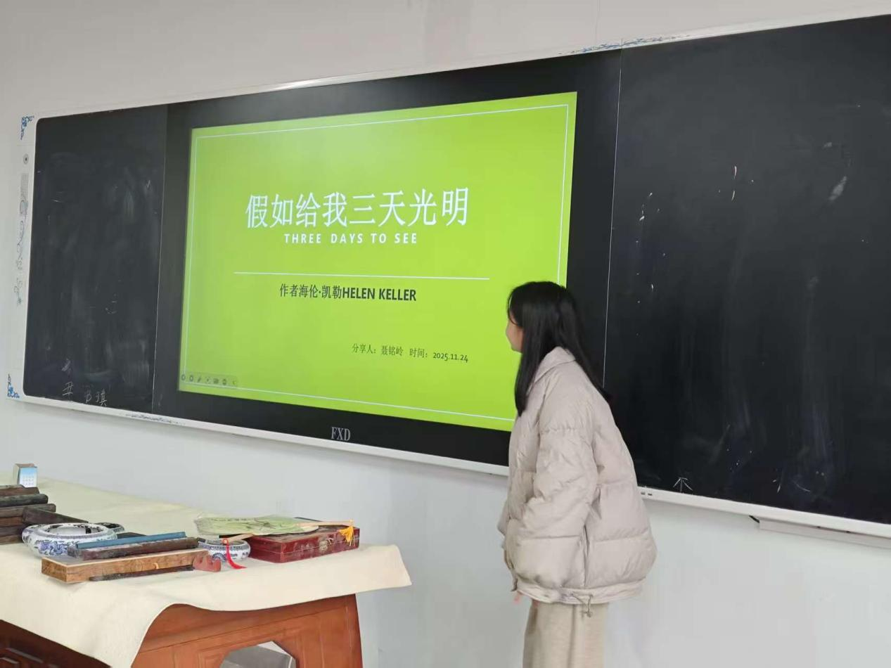 (本网讯:李诗雨)为引导青年学生在阅读中涵养品格、丰盈精神世界,在交流中碰撞思想火花、凝聚奋进力量,教育学院特组织开展了第二十期“悦读愉己”线下读书分享会。诚邀各非毕业班同学暂别生活的喧嚣,带上心仪的书籍围坐相聚,分享字里行间的感动与启迪,与有趣的灵魂温暖对话,共赴一场书香氤氲的精神盛宴。