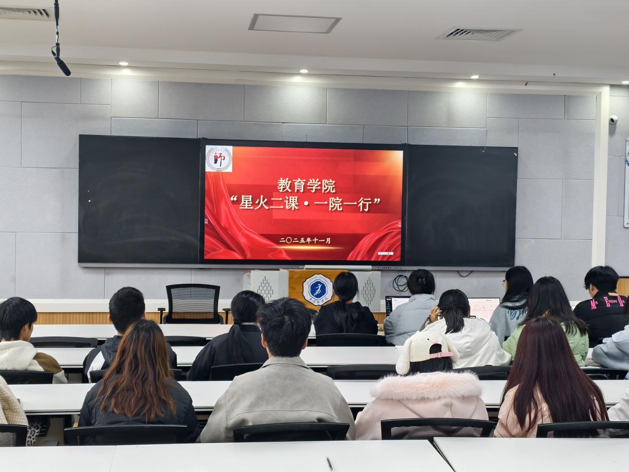 (本网讯:图/郭家辉|文/郭家辉)为精准对接学生成长需求,凝聚协同育人共识,全面助力学子综合素质提升,11月24日下午,教育学院与校第二课堂管理服务中心在教育学院精品录播室2联合举办“星火二课・一院一行” 第二课堂合作交流活动。