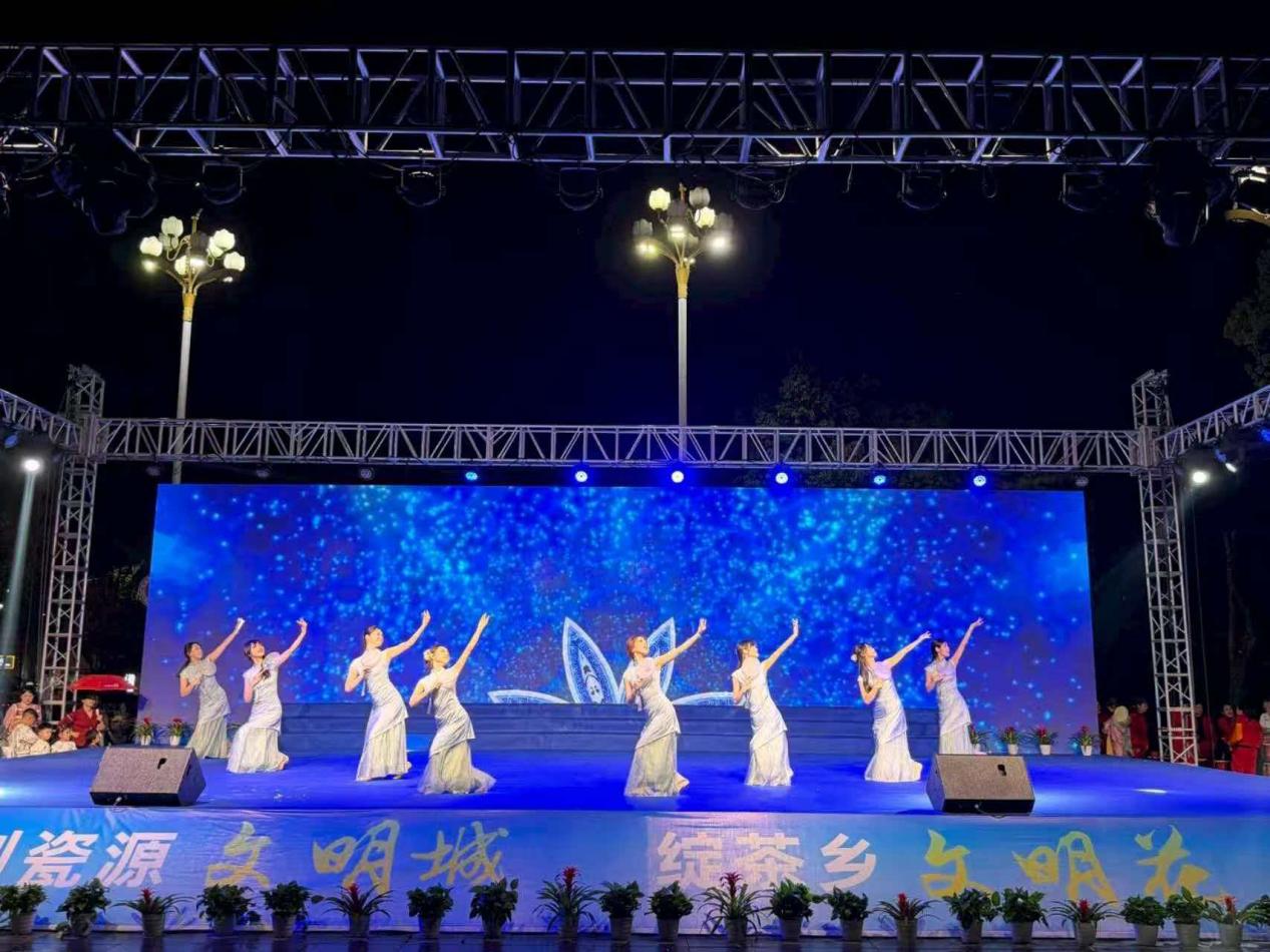 当晚的广场灯火璀璨、人气高涨,歌舞、快板、戏曲等精彩节目轮番上演,为浮梁市民带来了一场沉浸式的创文文化盛宴。在万众期待中,教育学院舞韵舞蹈团的师生们身着素雅服饰,伴着《青花瓷》悠扬婉转的旋律缓缓登场。