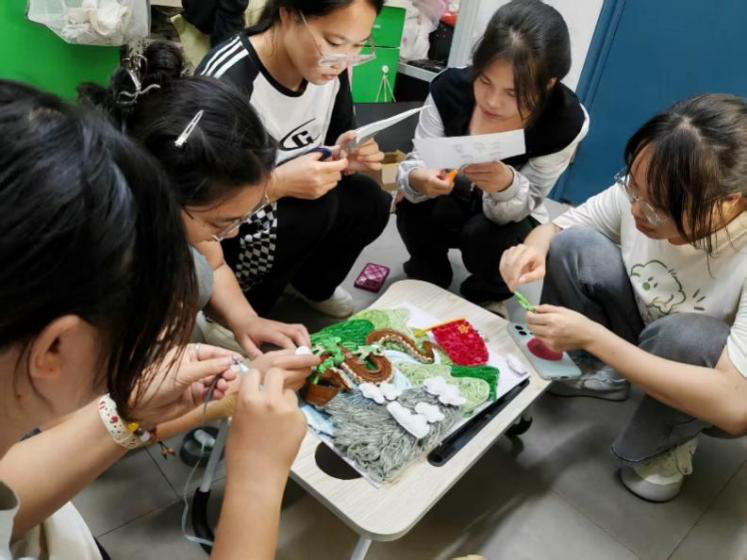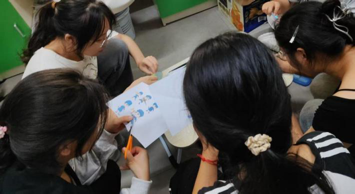团队成员们在制作衍纸 红韵纸艺实践队摄