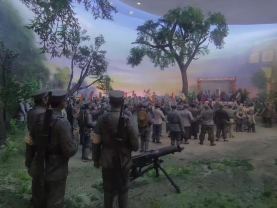 带着这幅衍纸作品,我们先走进南昌八一起义纪念馆。站在复原的起义指挥部旧址前,玻璃展柜里的旧军装、锈迹斑斑的步枪,与我们衍纸作品里“绿军装、红星帽”的红军形象瞬间重叠。曾在纸艺中反复雕琢的“坚毅群像”,此刻有了具象的参照:当年的战士们,正是这样身着军装、紧握钢枪,在1927年的深夜,用一声枪响划破黑暗,掀开了中国革命的新篇章。我们忍不住将衍纸作品贴近展窗,纸卷上的“希望之径”暖光,仿佛与馆内照亮历史的灯光相融——原来我们笔下的“光明”,早已刻在这座城市的基因里。
