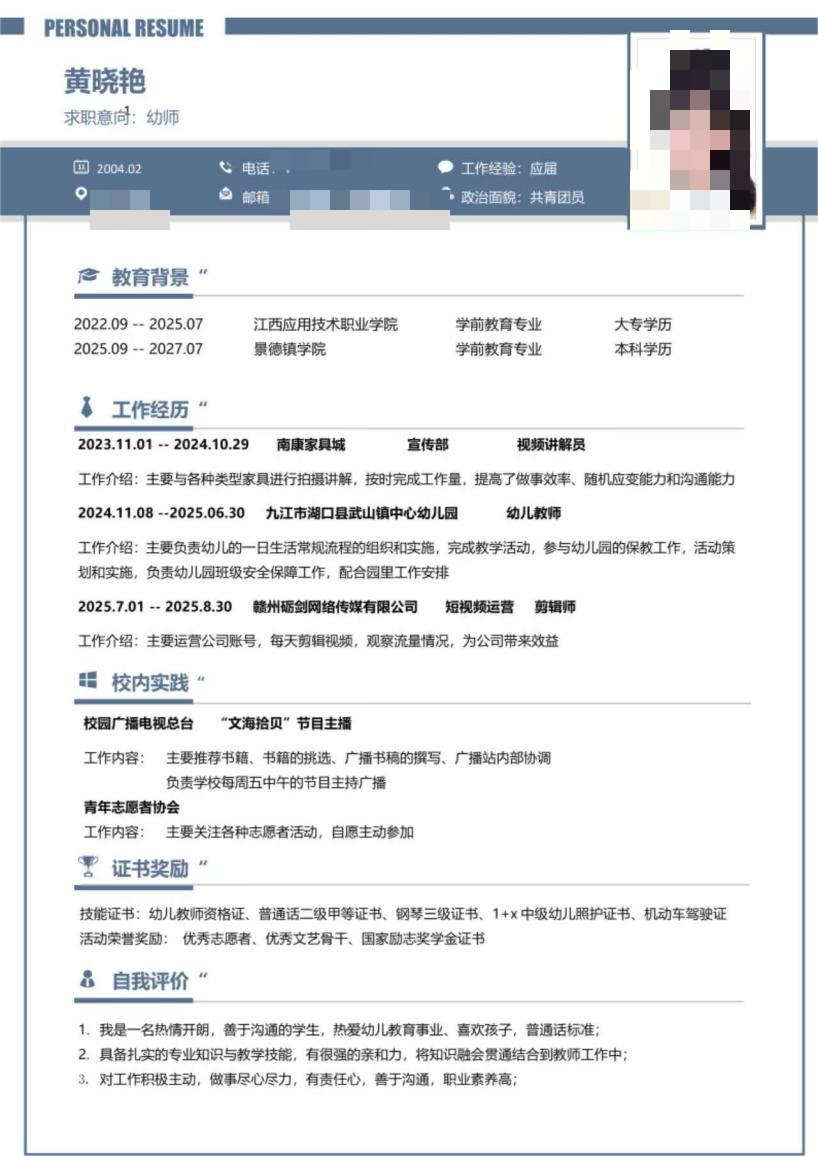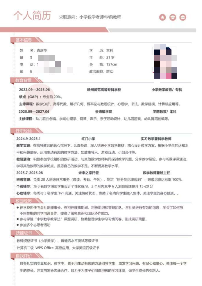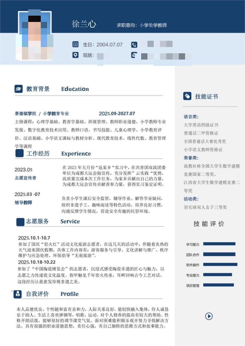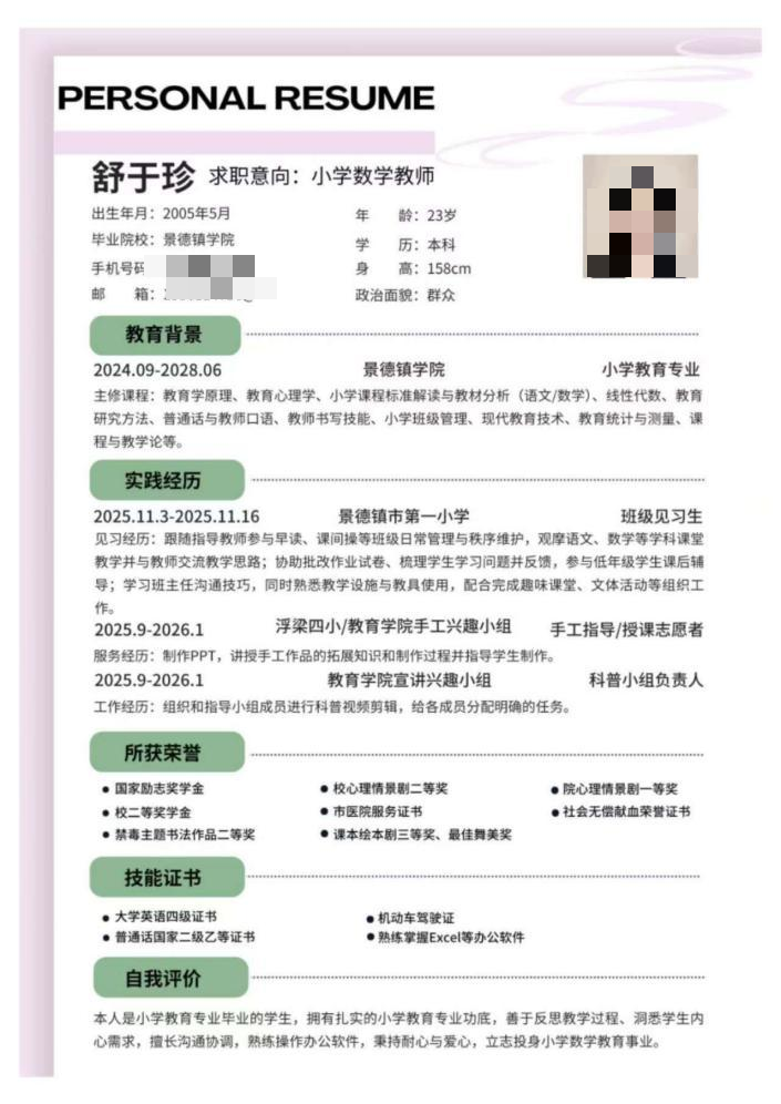 此次简历制作大赛不仅有效提升了同学们的简历制作能力,帮助大家明确了未来求职方向,更在备赛过程中锤炼了大家的思辨能力与语言表达能力,为教育学院学生的求职之路搭建了坚实桥梁。未来,教育学院将持续深挖实践资源、丰富育人载体,愿每一位青年学生都能在一次次历练中明确方向、锤炼本领,在青春赛道上奋力奔跑,书写无愧于时代的精彩答卷!