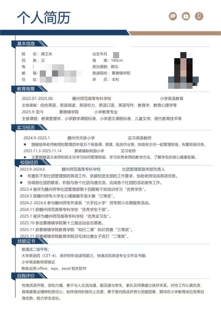 25小教专升本班 龚卫未