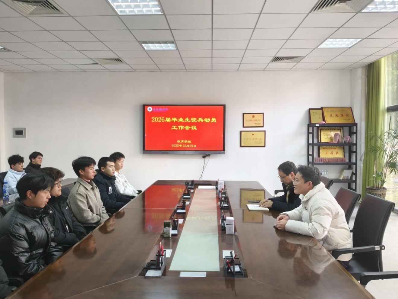 (本网讯:文|蒋文蕾/图|付文睿)为深入贯彻落实国防建设战略部署,扎实推进征兵工作有序开展。教育学院于12月29日下午在党员活动室召开了2026届毕业生征兵动员工作会议。教育学院党委副书记冯唐锴,毕业班辅导员罗毅峰参加会议,本次会议由罗毅峰主持。