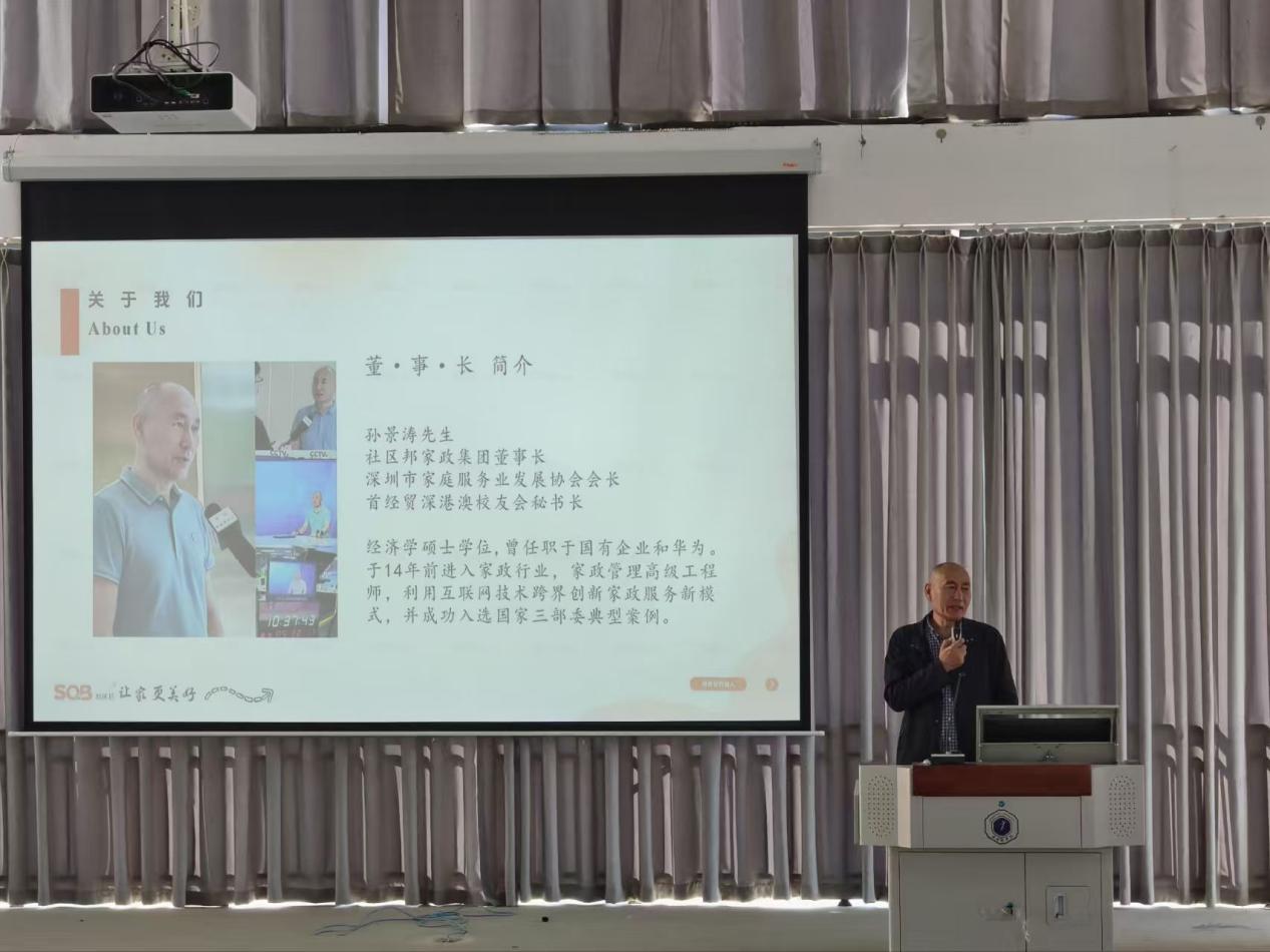 宣讲会上,孙景涛先生首先播放了宣讲视频,然后结合实例,详细介绍了关于职业培训与待遇,指出公司推出了专项人才培养计划,为从业者提供“培训 + 就业 + 成长”一站式服务,入职前将开展为期一个月的理论 + 实操系统化培训,培训期间免费提供住宿与午餐;正式上岗后当月月薪 4000 元起,次月可根据个人表现与技能水平上调薪资,同时享有五险福利保障,还能免费参与插花、茶艺等特色技能培训,工作满六个月的员工,可考取由培训学校与深圳家庭服务业发展协会联合颁发的行业中级证书,该证书具备较高行业认可度,助力从业者拓宽职业发展路径。