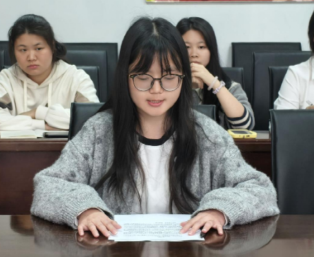 教育学院学生会主席团成员李素琴发言 张嫒玉摄