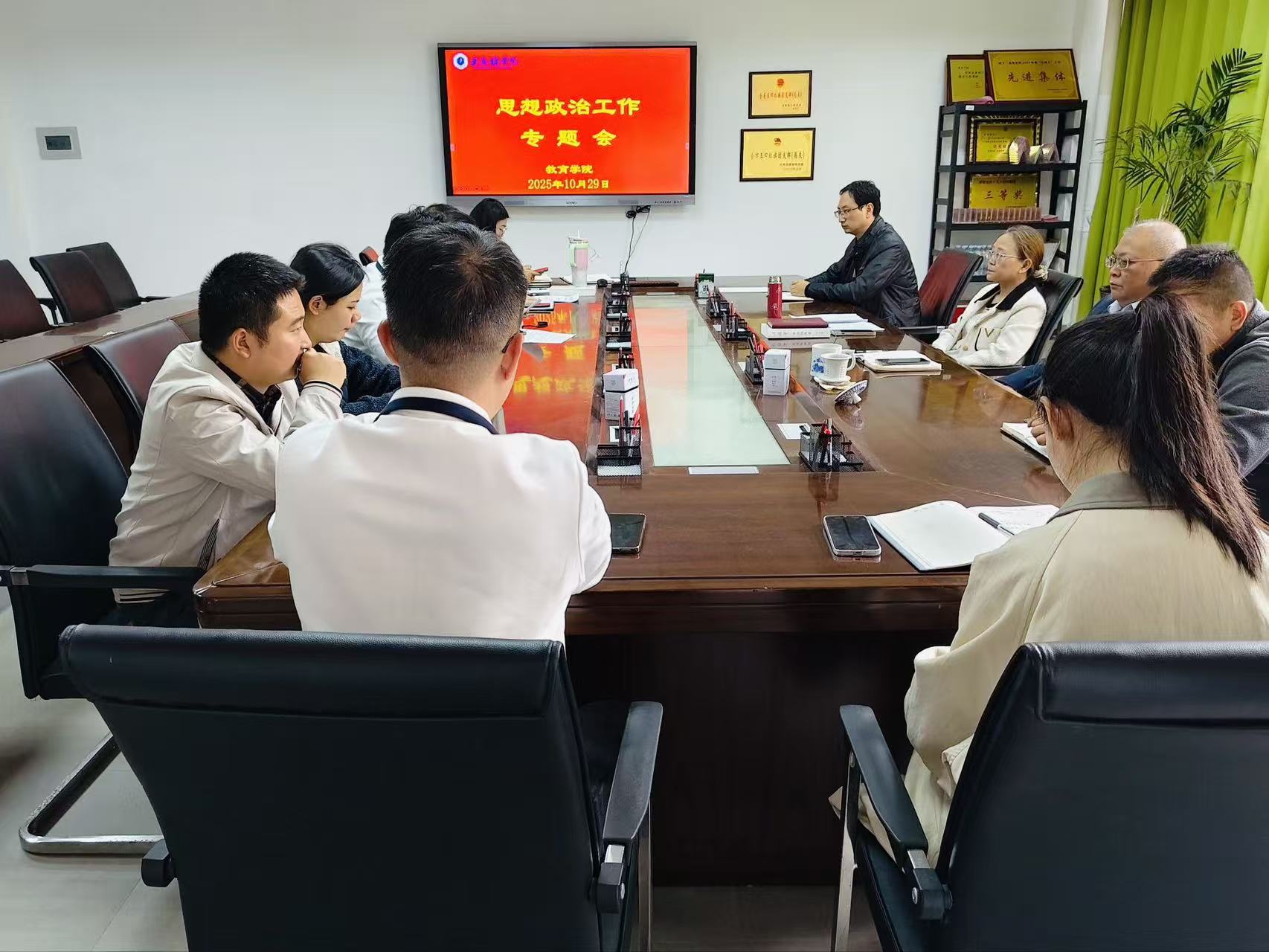 (本网讯:文|熊志星/图|姜子欣)聚焦2025年宣传思想文化与思想政治工作新要求、新任务,教育学院于10月29日下午,在党员活动室召开2025年下半年思想政治工作专题会议。教育学院党委书记李莉出席并主持会议,院党委副书记、院长冯兵,院党委副书记冯唐锴,副院长汪潇出席本次会议。