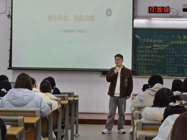 (本网讯:文|曹梦瑶)为帮助同学们快速从假期模式切换至校园模式,缓解返校后的心理不适,引导学生以积极健康的心态迎接新学期的学习生活,教育学院各班级陆续开展以“收心归位,向阳启航”为主题的心理健康教育班会,为学生的心灵成长注入温暖力量。