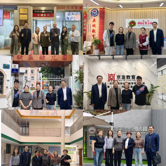 走访期间,万文军一行先后到访深圳市深家网络信息服务有限公司(“社区帮”家政)、深圳英诚文化教育有限公司、会心儿童成长中心、深圳市南山区欢乐幼儿园、深圳京发教育科技有限公司、天悦幼儿园、深圳市罗湖区爱德堡幼儿园、大群教育(深圳)有限公司、喜宝儿童成长中心等9家机构。万文军一行深入企业运营一线与服务现场,实地考察各机构业务布局、人才培养适配模式、岗位需求标准及行业发展前沿态势,并围绕人才定向输送、实习实训基地共建、专业课程体系优化等关键议题,与企业负责人展开深度座谈交流,共商协同育人路径。