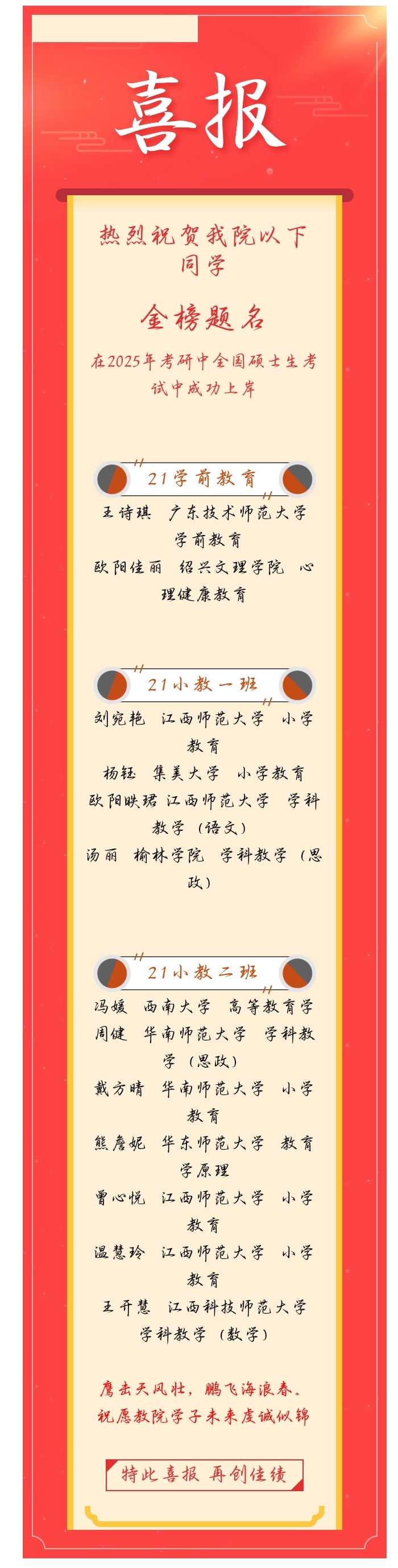 教院有喜|恭喜我院13名学子成功考取硕士研究生