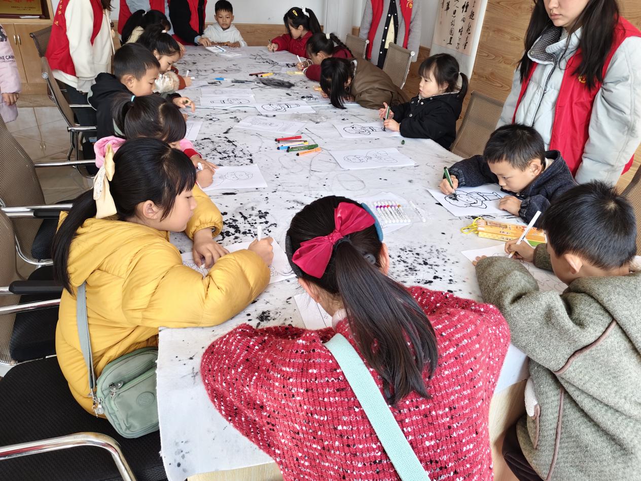 党员志愿者带领孩子们绘画“我心中的雷锋” 姜子欣、胡依美摄
