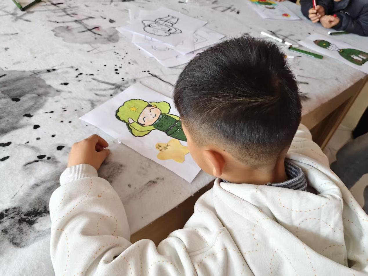 理论宣讲过后,党员志愿者们带领孩子们开展系列手工实践活动。在“我心中的雷锋”绘画环节,支部成员一对一耐心指导,鼓励孩子们大胆想象、用心创作,用画笔勾勒出心中雷锋叔叔的模样;在“雷锋小标兵”心愿卡制作环节,志愿者引导孩子们将践行雷锋精神的美好心愿落笔于卡片,写下自己想做的一件好事,并邀请孩子们主动分享绘画构思和心愿内容,让学雷锋的种子在心中发芽,把践行雷锋精神的想法转化为具体行动。