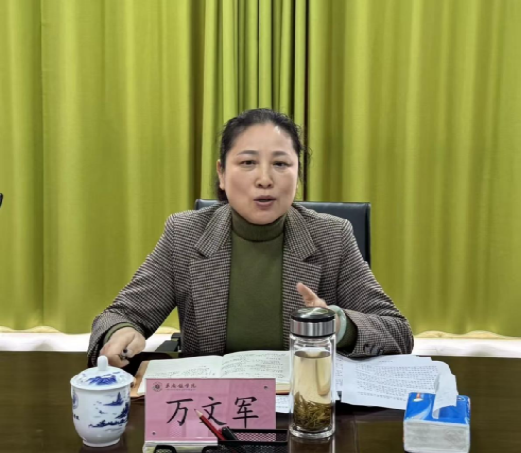 万文军在会上发表了点评讲话,她首先对教育学院一年来的工作给予了充分肯定,并对本次会议的顺利召开给予了高度评价。同时,她也对教育学院党委领导班子提出了四点希望和要求:一是要在把牢政治方向上持续发力。始终把政治建设摆在首位,强化理论武装,严守党的政治纪律和政治规矩,严格落实意识形态工作责任制,确保学校党委决策部署落地见效。二是要在落实立德树人上持续发力。紧扣教育学院专业转型发展要求,锚定新时代教育人才培养目标,深化教育教学改革创新,健全完善全员全过程全方位育人体系,着力培养堪当民族复兴重任、适应教育现代化需求的高素质专业化教育人才。三是要在推动内涵发展上持续发力。对接国家战略和区域发展需求,聚焦专业建设、师资队伍建设,做强优势特色、激发创新活力,破解发展瓶颈,不断提升学院核心竞争力与办学影响力。四是要在抓好整改落实上持续发力。以民主生活会问题整改为抓手,一体制定整改清单、明确时限责任,坚持开门整改、接受监督,班子带头、钉钉子推进,把整改成果转化为学院高质量发展实效。
